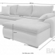 Kampas turi miegamą funkciją ir patalynės dėžę,keičiama kampo pusė. Ilga gulima vieta